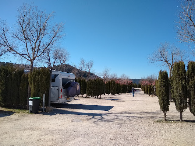 Later on Friday a couple of other vans turned up - British and German - it was good to have a bit of company. One thing you can be sure about on a Spanish campsite, just because it is remote does not mean it will be peaceful. Friday afternoon was accompanied by the sound of hedge trimming man chopping the tops of the pitches' conifers. He packed up at 5.00pm on the dot just as the invasion of Spanish weekenders arrived. As it was mid-February there were only a handful of them, but in no way did this ensure tranquility, it is truly remarkable just how raucous a small gaggle of socialising Spanish can be. However, it is a happy cacophony and we can live with that.
