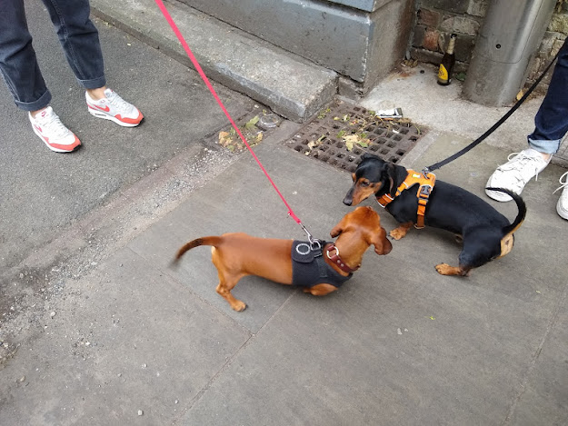 After admiring the new flat, complete with a shared roof garden overlooking the Olympic stadium, we took a stroll through Victoria Park. Ralph (the sausage dog) appears to have made many new four-legged friends.